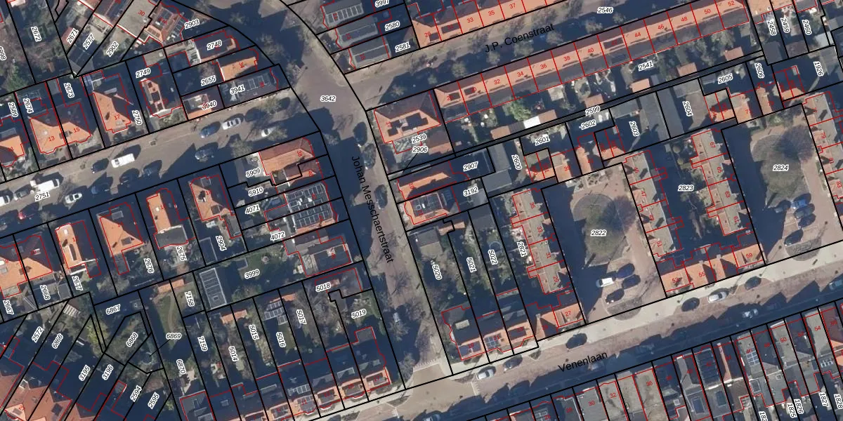 Gebruik de zoekbalk of klik op een perceel voor informatie over de adressen binnen dit perceel.