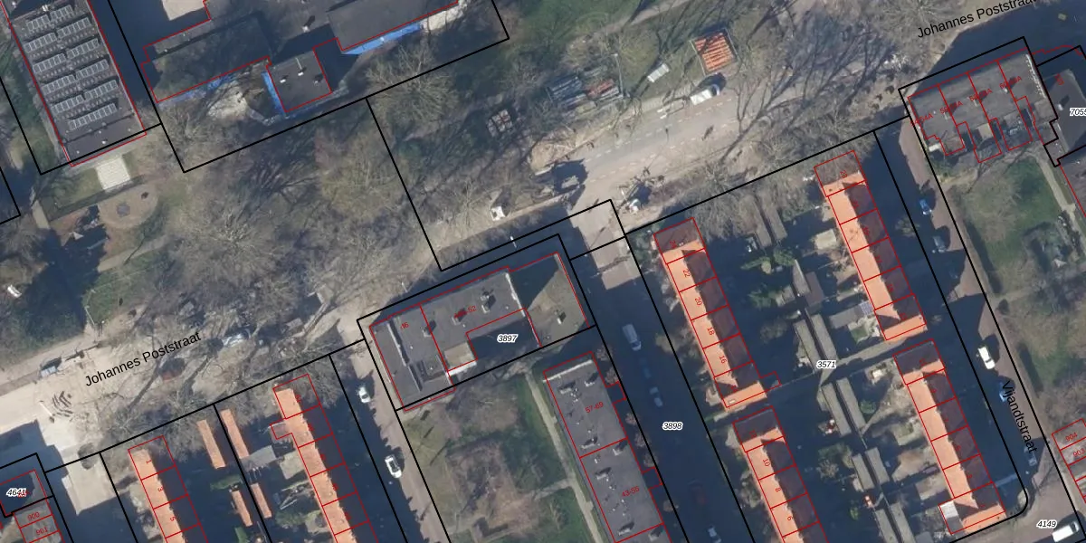 Het perceel waarop Johannes Poststraat 52 staat heeft een oppervlakte van 740 m². Dit is een groot perceel. De perceeloppervlakte wordt geregistreerd door het Kadaster. Gedetailleerde informatie over de maten van dit perceel kunt u vinden in het rapport Kadastrale kaart met maatvoering van Johannes Poststraat 52.