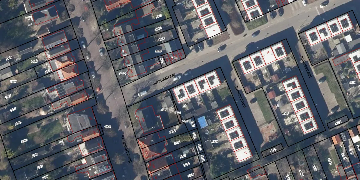 Het perceel waarop Juniusstraat 2 staat heeft een oppervlakte van 1606 m². Dit is een zeer groot perceel. De perceeloppervlakte wordt geregistreerd door het Kadaster. Gedetailleerde informatie over de maten van dit perceel kunt u vinden in het rapport Kadastrale kaart met maatvoering van Juniusstraat 2.