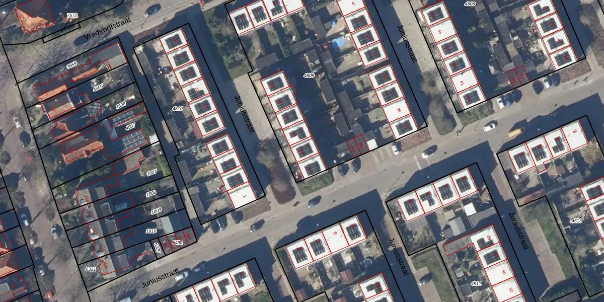 Het perceel waarop Juniusstraat 29 staat heeft een oppervlakte van 2964 m². Dit is een zeer groot perceel. De perceeloppervlakte wordt geregistreerd door het Kadaster. Gedetailleerde informatie over de maten van dit perceel kunt u vinden in het rapport Kadastrale kaart met maatvoering van Juniusstraat 29.