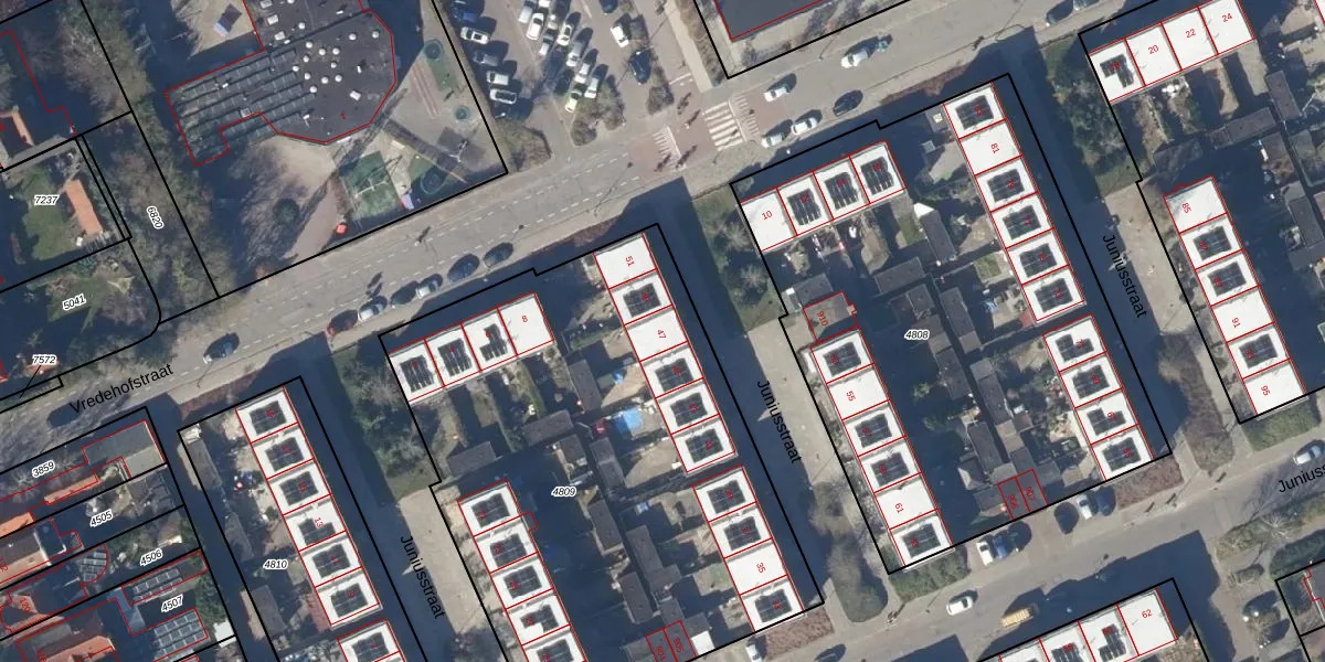 Het perceel waarop Juniusstraat 47 staat heeft een oppervlakte van 2964 m². Dit is een zeer groot perceel. De perceeloppervlakte wordt geregistreerd door het Kadaster. Gedetailleerde informatie over de maten van dit perceel kunt u vinden in het rapport Kadastrale kaart met maatvoering van Juniusstraat 47.