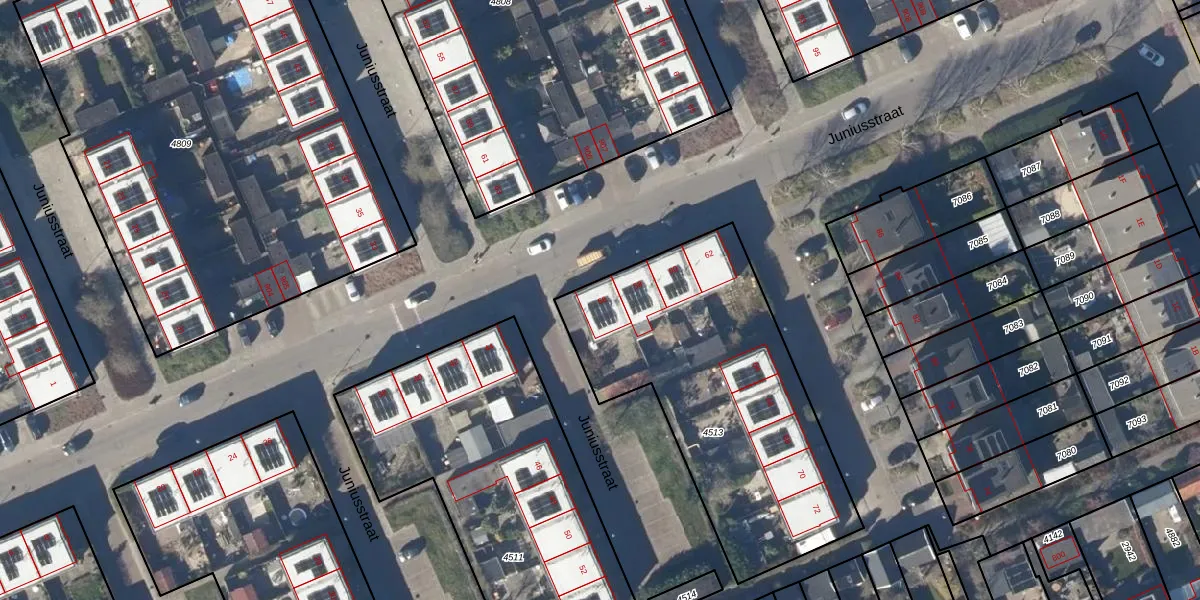 Juniusstraat 56 is gelegen op kadastraal perceel HOO00D4513. Deze kadastrale aanduiding is uniek en wordt gebruikt door het Kadaster om eigendomsrechten en andere zakelijke rechten vast te leggen. Het perceel maakt onderdeel uit van de kadastrale gemeente Hoorn.