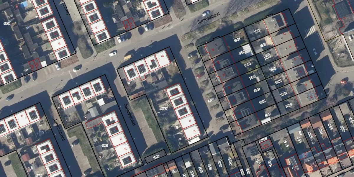 Juniusstraat 64 is gelegen op kadastraal perceel HOO00D4513. Deze kadastrale aanduiding is uniek en wordt gebruikt door het Kadaster om eigendomsrechten en andere zakelijke rechten vast te leggen. Het perceel maakt onderdeel uit van de kadastrale gemeente Hoorn.