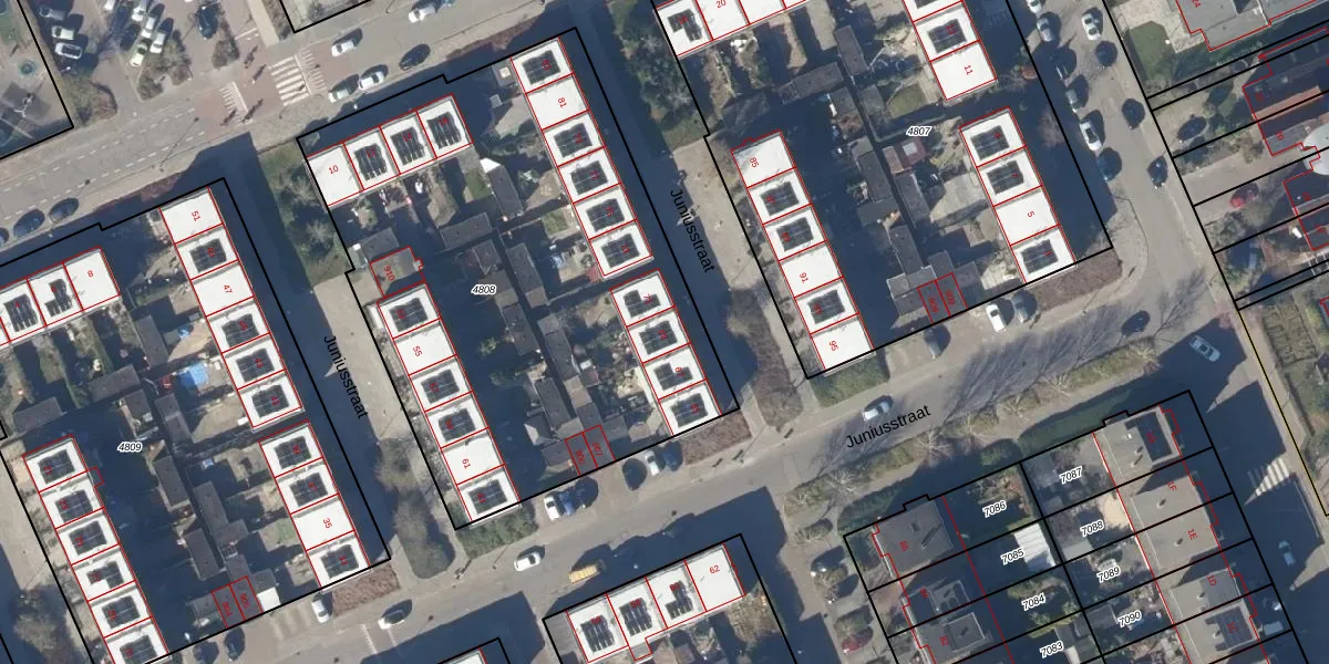 Het perceel waarop Juniusstraat 69 staat heeft een oppervlakte van 2918 m². Dit is een zeer groot perceel. De perceeloppervlakte wordt geregistreerd door het Kadaster. Gedetailleerde informatie over de maten van dit perceel kunt u vinden in het rapport Kadastrale kaart met maatvoering van Juniusstraat 69.