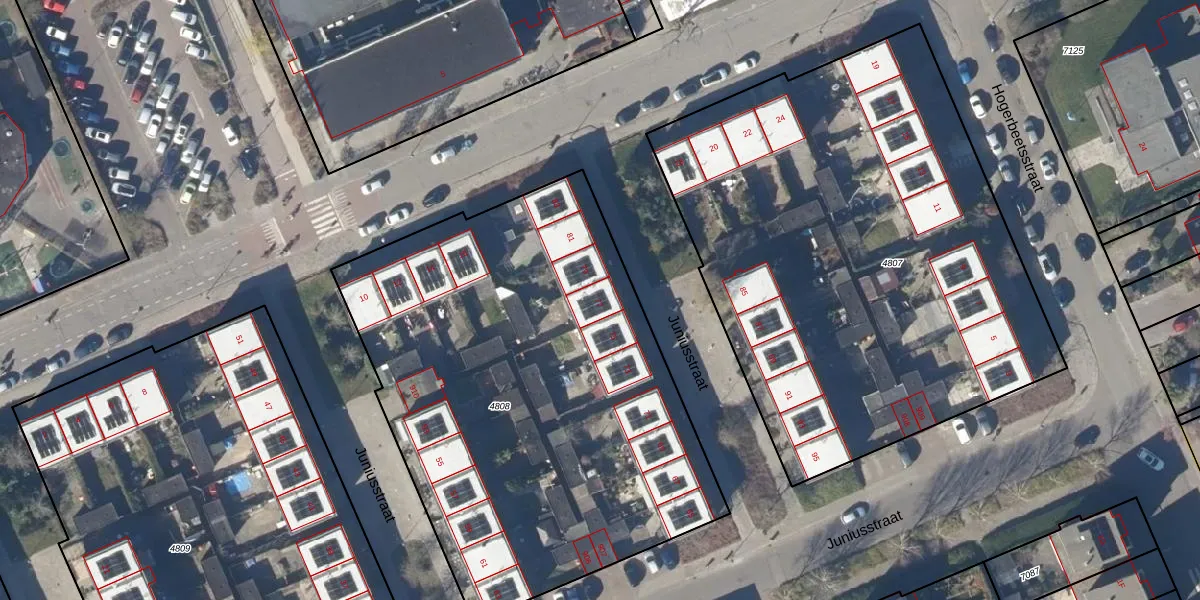 Het perceel waarop Juniusstraat 77 staat heeft een oppervlakte van 2918 m². Dit is een zeer groot perceel. De perceeloppervlakte wordt geregistreerd door het Kadaster. Gedetailleerde informatie over de maten van dit perceel kunt u vinden in het rapport Kadastrale kaart met maatvoering van Juniusstraat 77.