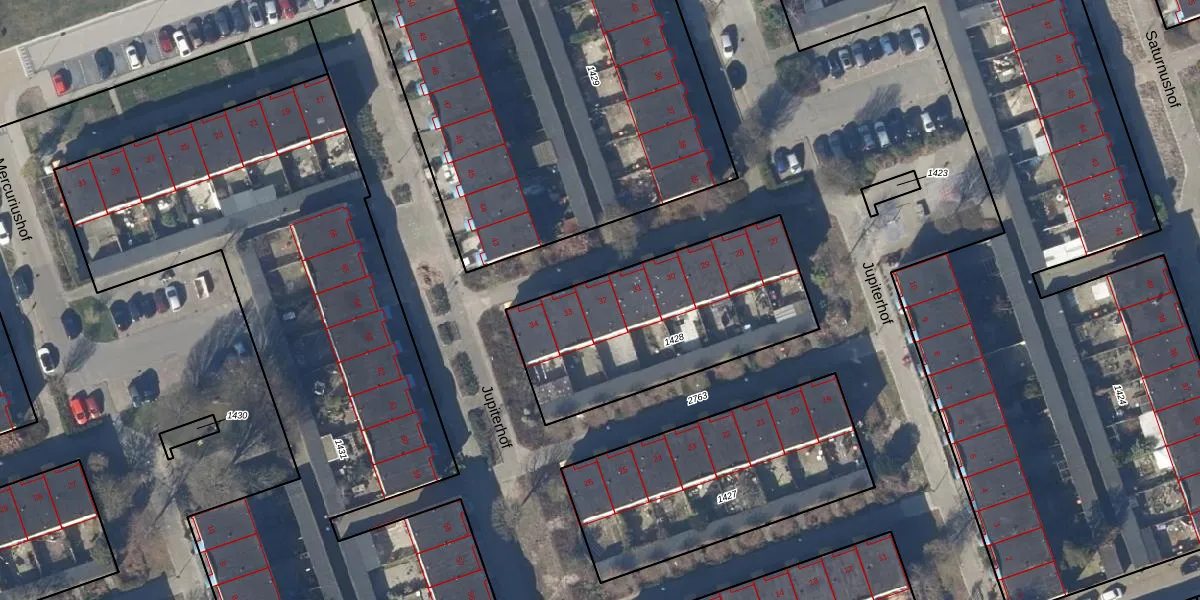 Het perceel waarop Jupiterhof 32 staat heeft een oppervlakte van 956 m². Dit is een groot perceel. De perceeloppervlakte wordt geregistreerd door het Kadaster. Gedetailleerde informatie over de maten van dit perceel kunt u vinden in het rapport Kadastrale kaart met maatvoering van Jupiterhof 32.
