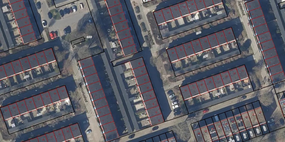 Het perceel waarop Jupiterhof 57 staat heeft een oppervlakte van 4660 m². Dit is een zeer groot perceel. De perceeloppervlakte wordt geregistreerd door het Kadaster. Gedetailleerde informatie over de maten van dit perceel kunt u vinden in het rapport Kadastrale kaart met maatvoering van Jupiterhof 57.