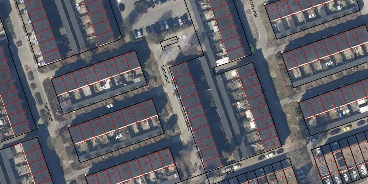 Jupiterhof 8 is gelegen op kadastraal perceel HOO00C1424. Deze kadastrale aanduiding is uniek en wordt gebruikt door het Kadaster om eigendomsrechten en andere zakelijke rechten vast te leggen. Het perceel maakt onderdeel uit van de kadastrale gemeente Hoorn.
