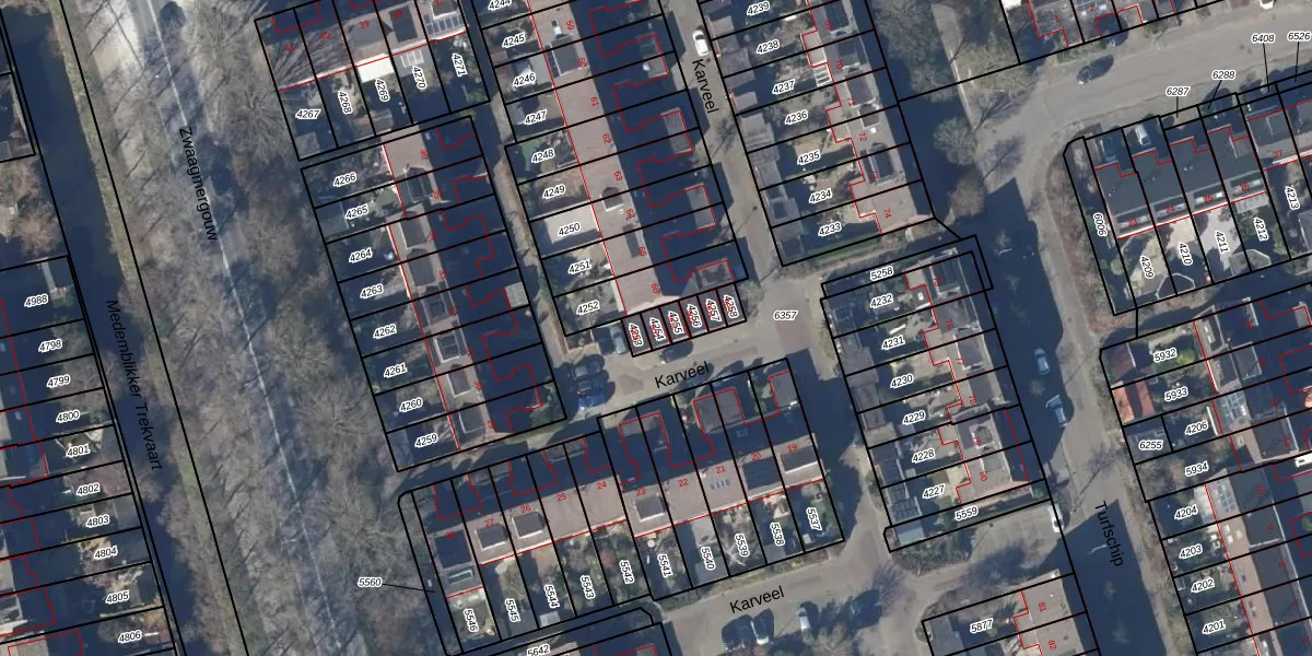 Het perceel waarop Karveel 901 staat heeft een oppervlakte van 19 m². Dit is een klein perceel. De perceeloppervlakte wordt geregistreerd door het Kadaster. Gedetailleerde informatie over de maten van dit perceel kunt u vinden in het rapport Kadastrale kaart met maatvoering van Karveel 901.