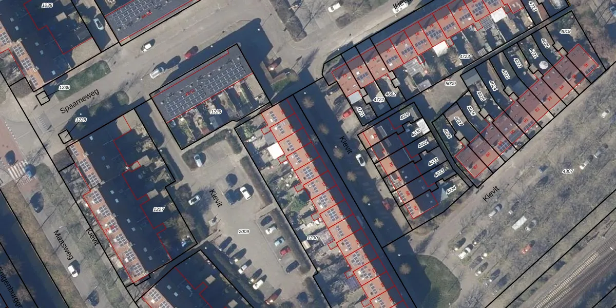 Het perceel waarop Kievit 55 staat heeft een oppervlakte van 1849 m². Dit is een zeer groot perceel. De perceeloppervlakte wordt geregistreerd door het Kadaster. Gedetailleerde informatie over de maten van dit perceel kunt u vinden in het rapport Kadastrale kaart met maatvoering van Kievit 55.