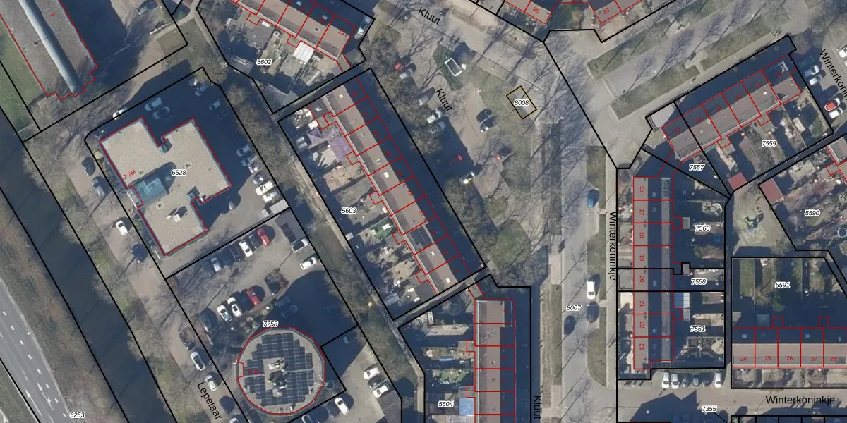 Het perceel waarop Kluut 12 staat heeft een oppervlakte van 1376 m². Dit is een zeer groot perceel. De perceeloppervlakte wordt geregistreerd door het Kadaster. Gedetailleerde informatie over de maten van dit perceel kunt u vinden in het rapport Kadastrale kaart met maatvoering van Kluut 12.