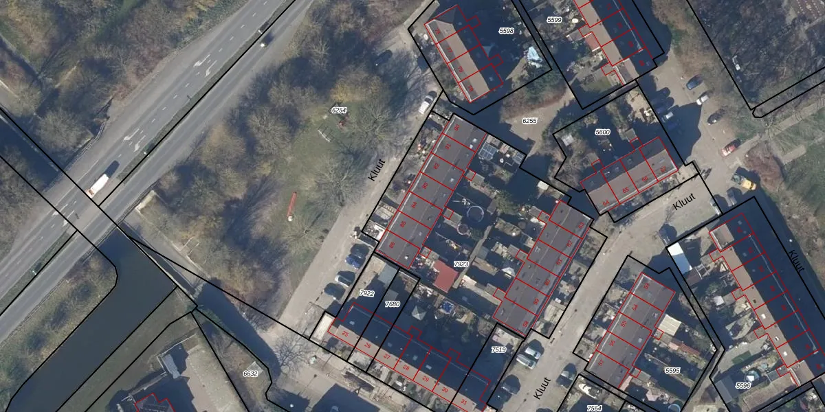 Het perceel waarop Kluut 84 staat heeft een oppervlakte van 2434 m². Dit is een zeer groot perceel. De perceeloppervlakte wordt geregistreerd door het Kadaster. Gedetailleerde informatie over de maten van dit perceel kunt u vinden in het rapport Kadastrale kaart met maatvoering van Kluut 84.