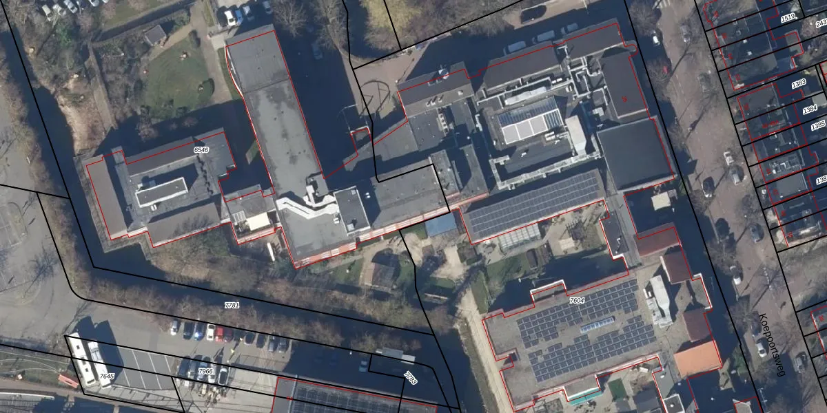 Het perceel waarop Koepoortsweg 35-161 staat heeft een oppervlakte van 9145 m². Dit is een zeer groot perceel. De perceeloppervlakte wordt geregistreerd door het Kadaster. Gedetailleerde informatie over de maten van dit perceel kunt u vinden in het rapport Kadastrale kaart met maatvoering van Koepoortsweg 35-161.