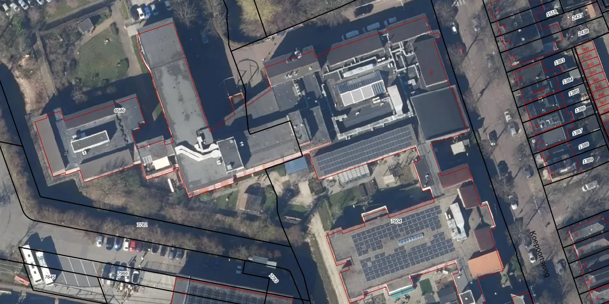 Het perceel waarop Koepoortsweg 35-253 staat heeft een oppervlakte van 9665 m². Dit is een zeer groot perceel. De perceeloppervlakte wordt geregistreerd door het Kadaster. Gedetailleerde informatie over de maten van dit perceel kunt u vinden in het rapport Kadastrale kaart met maatvoering van Koepoortsweg 35-253.