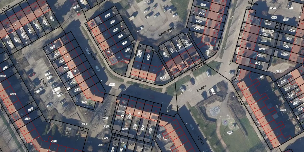 Koolmees 42 is gelegen op kadastraal perceel HOO00L4226. Deze kadastrale aanduiding is uniek en wordt gebruikt door het Kadaster om eigendomsrechten en andere zakelijke rechten vast te leggen. Het perceel maakt onderdeel uit van de kadastrale gemeente Hoorn.
