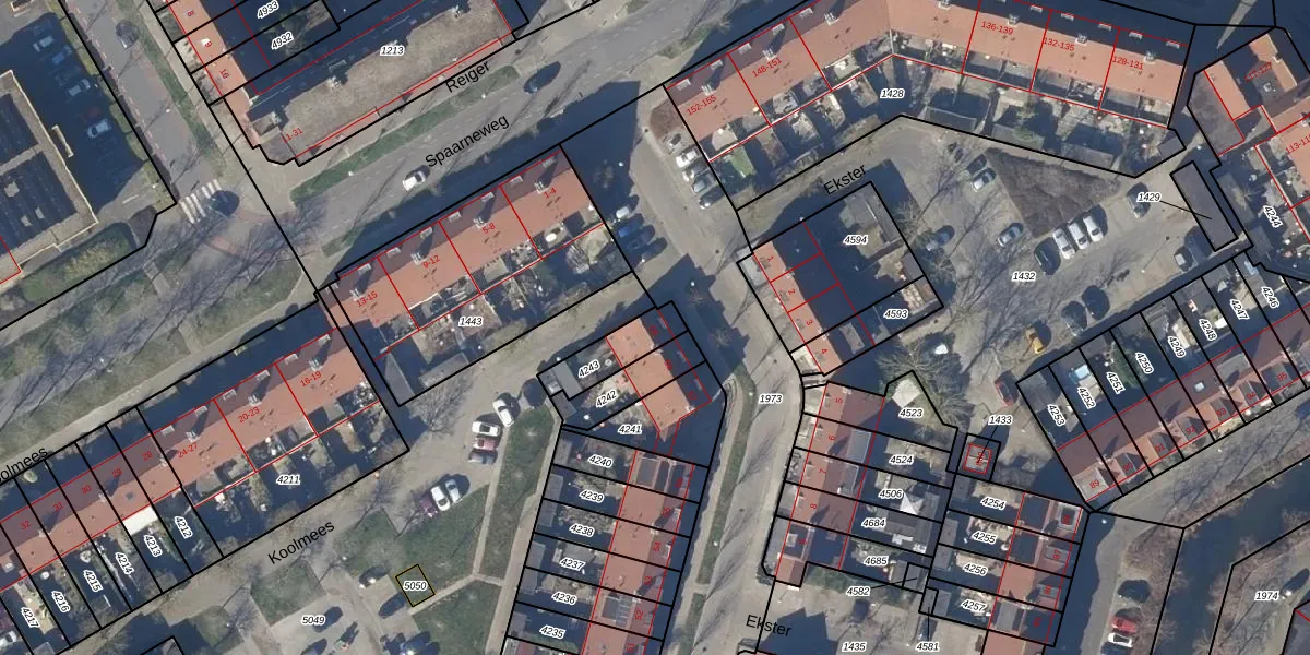 Gebruik de zoekbalk of klik op een perceel voor informatie over de adressen binnen dit perceel.