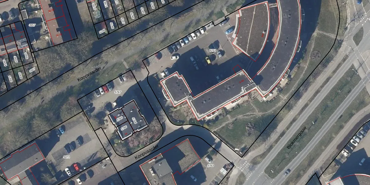 Het perceel waarop Koopvaarder 10 staat heeft een oppervlakte van 5751 m². Dit is een zeer groot perceel. De perceeloppervlakte wordt geregistreerd door het Kadaster. Gedetailleerde informatie over de maten van dit perceel kunt u vinden in het rapport Kadastrale kaart met maatvoering van Koopvaarder 10.