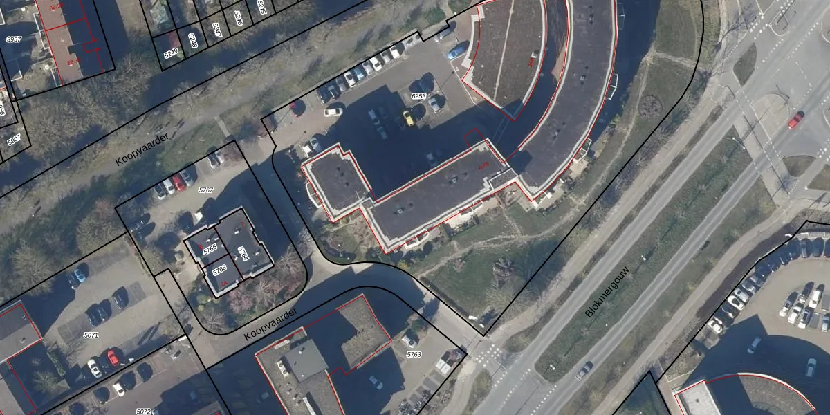 Het perceel waarop Koopvaarder 14 staat heeft een oppervlakte van 5751 m². Dit is een zeer groot perceel. De perceeloppervlakte wordt geregistreerd door het Kadaster. Gedetailleerde informatie over de maten van dit perceel kunt u vinden in het rapport Kadastrale kaart met maatvoering van Koopvaarder 14.