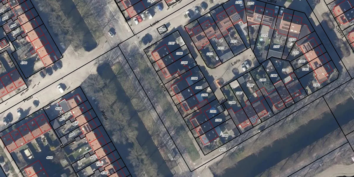 Het perceel waarop Larix 4 staat heeft een oppervlakte van 181 m². Dit is een middelgroot perceel. De perceeloppervlakte wordt geregistreerd door het Kadaster. Gedetailleerde informatie over de maten van dit perceel kunt u vinden in het rapport Kadastrale kaart met maatvoering van Larix 4.