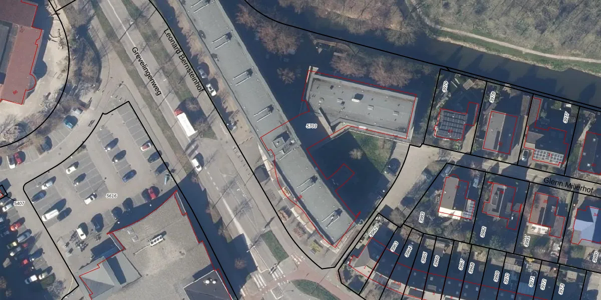 Het perceel waarop Leonard Bernsteinhof 17 staat heeft een oppervlakte van 5344 m². Dit is een zeer groot perceel. De perceeloppervlakte wordt geregistreerd door het Kadaster. Gedetailleerde informatie over de maten van dit perceel kunt u vinden in het rapport Kadastrale kaart met maatvoering van Leonard Bernsteinhof 17.