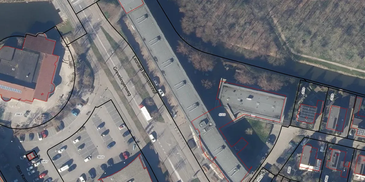 Het perceel waarop Leonard Bernsteinhof 37 staat heeft een oppervlakte van 5344 m². Dit is een zeer groot perceel. De perceeloppervlakte wordt geregistreerd door het Kadaster. Gedetailleerde informatie over de maten van dit perceel kunt u vinden in het rapport Kadastrale kaart met maatvoering van Leonard Bernsteinhof 37.