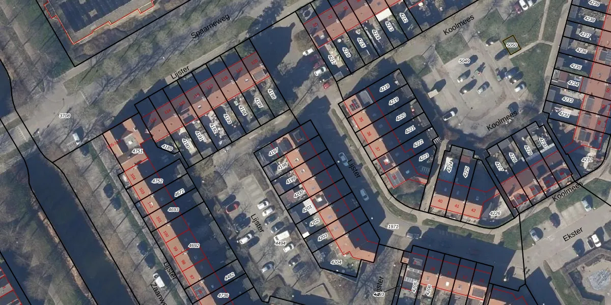Gebruik de zoekbalk of klik op een perceel voor informatie over de adressen binnen dit perceel.