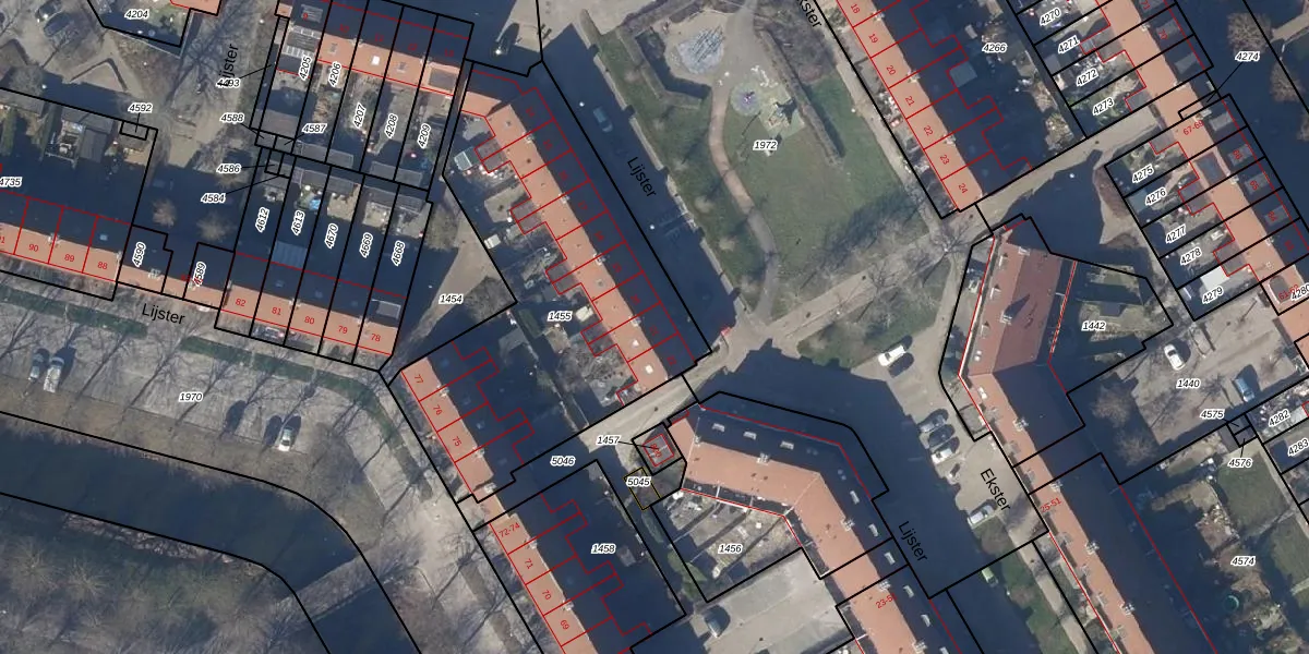 Het perceel waarop Lijster 21 staat heeft een oppervlakte van 1665 m². Dit is een zeer groot perceel. De perceeloppervlakte wordt geregistreerd door het Kadaster. Gedetailleerde informatie over de maten van dit perceel kunt u vinden in het rapport Kadastrale kaart met maatvoering van Lijster 21.