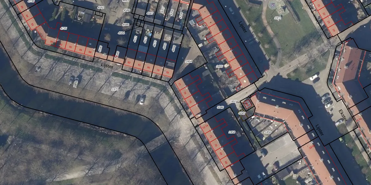 Het perceel waarop Lijster 76 staat heeft een oppervlakte van 1665 m². Dit is een zeer groot perceel. De perceeloppervlakte wordt geregistreerd door het Kadaster. Gedetailleerde informatie over de maten van dit perceel kunt u vinden in het rapport Kadastrale kaart met maatvoering van Lijster 76.
