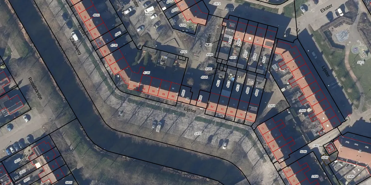 Het perceel waarop Lijster 87 staat heeft een oppervlakte van 61 m². Dit is een klein perceel. De perceeloppervlakte wordt geregistreerd door het Kadaster. Gedetailleerde informatie over de maten van dit perceel kunt u vinden in het rapport Kadastrale kaart met maatvoering van Lijster 87.