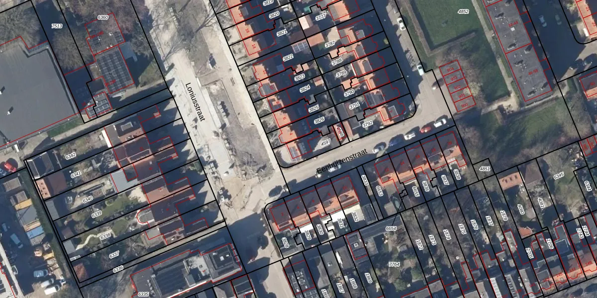 Gebruik de zoekbalk of klik op een perceel voor informatie over de adressen binnen dit perceel.