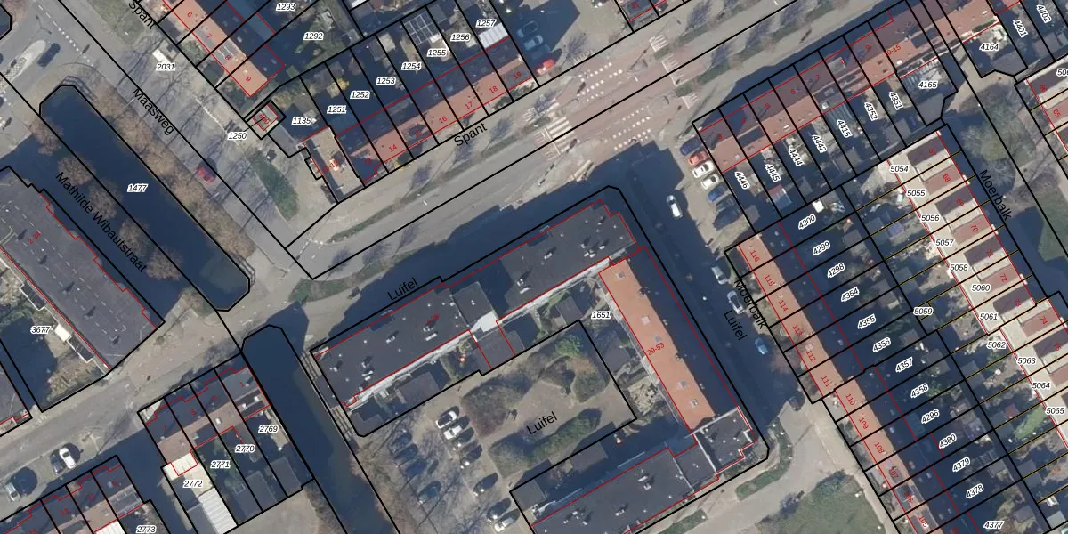 Het perceel waarop Luifel 14 staat heeft een oppervlakte van 2495 m². Dit is een zeer groot perceel. De perceeloppervlakte wordt geregistreerd door het Kadaster. Gedetailleerde informatie over de maten van dit perceel kunt u vinden in het rapport Kadastrale kaart met maatvoering van Luifel 14.