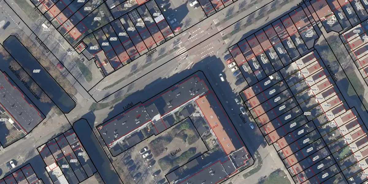 Het perceel waarop Luifel 15 staat heeft een oppervlakte van 2495 m². Dit is een zeer groot perceel. De perceeloppervlakte wordt geregistreerd door het Kadaster. Gedetailleerde informatie over de maten van dit perceel kunt u vinden in het rapport Kadastrale kaart met maatvoering van Luifel 15.