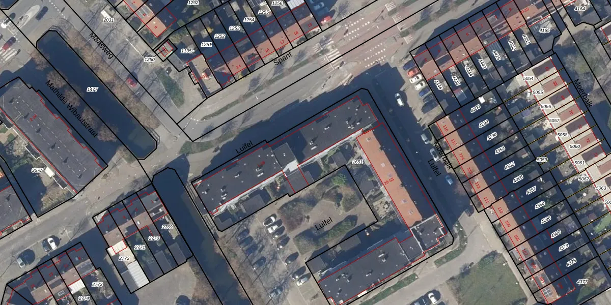 Het perceel waarop Luifel 21 staat heeft een oppervlakte van 2495 m². Dit is een zeer groot perceel. De perceeloppervlakte wordt geregistreerd door het Kadaster. Gedetailleerde informatie over de maten van dit perceel kunt u vinden in het rapport Kadastrale kaart met maatvoering van Luifel 21.
