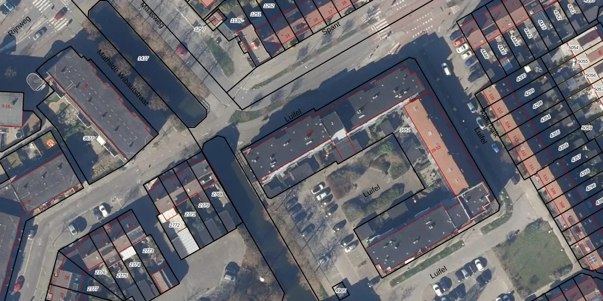 Het perceel waarop Luifel 27 staat heeft een oppervlakte van 2495 m². Dit is een zeer groot perceel. De perceeloppervlakte wordt geregistreerd door het Kadaster. Gedetailleerde informatie over de maten van dit perceel kunt u vinden in het rapport Kadastrale kaart met maatvoering van Luifel 27.