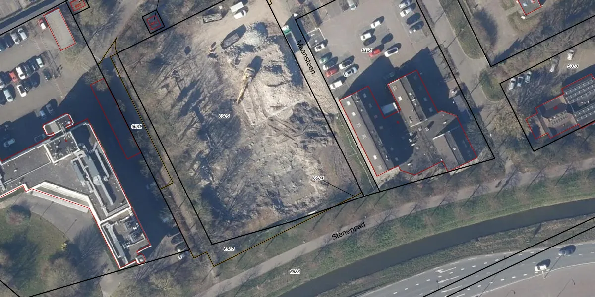 Het perceel waarop Maansteen 40 staat heeft een oppervlakte van 4042 m². Dit is een zeer groot perceel. De perceeloppervlakte wordt geregistreerd door het Kadaster. Gedetailleerde informatie over de maten van dit perceel kunt u vinden in het rapport Kadastrale kaart met maatvoering van Maansteen 40.