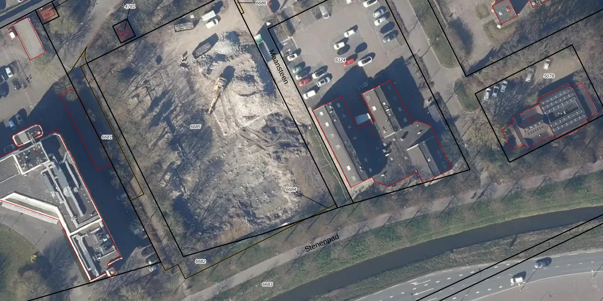 Het perceel waarop Maansteen 43 staat heeft een oppervlakte van 4042 m². Dit is een zeer groot perceel. De perceeloppervlakte wordt geregistreerd door het Kadaster. Gedetailleerde informatie over de maten van dit perceel kunt u vinden in het rapport Kadastrale kaart met maatvoering van Maansteen 43.