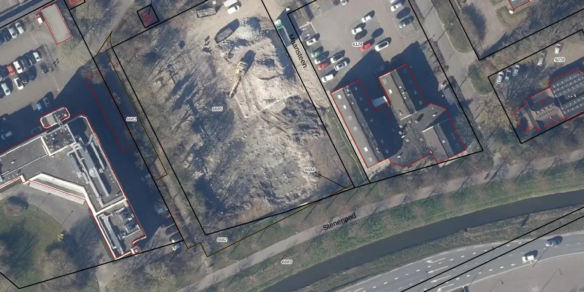 Het perceel waarop Maansteen 45 staat heeft een oppervlakte van 4042 m². Dit is een zeer groot perceel. De perceeloppervlakte wordt geregistreerd door het Kadaster. Gedetailleerde informatie over de maten van dit perceel kunt u vinden in het rapport Kadastrale kaart met maatvoering van Maansteen 45.