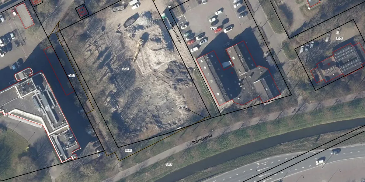 Het perceel waarop Maansteen 49 staat heeft een oppervlakte van 4042 m². Dit is een zeer groot perceel. De perceeloppervlakte wordt geregistreerd door het Kadaster. Gedetailleerde informatie over de maten van dit perceel kunt u vinden in het rapport Kadastrale kaart met maatvoering van Maansteen 49.