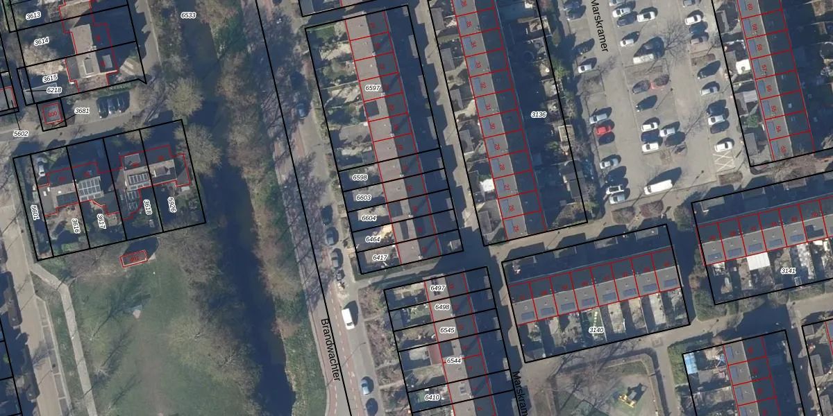 Gebruik de zoekbalk of klik op een perceel voor informatie over de adressen binnen dit perceel.