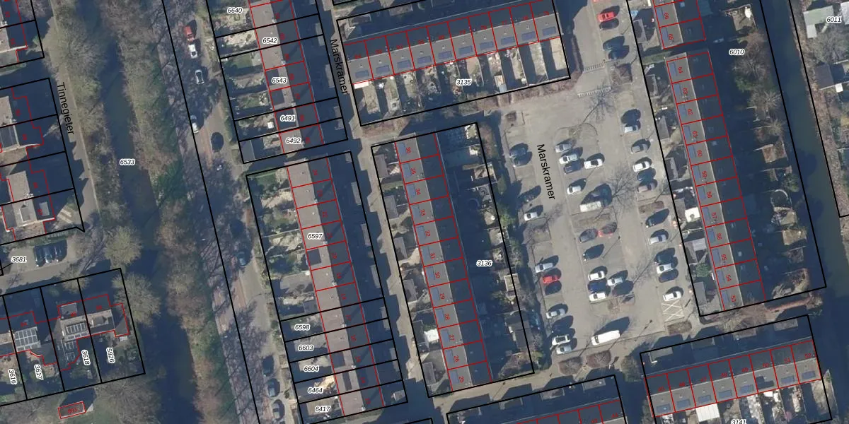 Het perceel waarop Marskramer 33 staat heeft een oppervlakte van 1540 m². Dit is een zeer groot perceel. De perceeloppervlakte wordt geregistreerd door het Kadaster. Gedetailleerde informatie over de maten van dit perceel kunt u vinden in het rapport Kadastrale kaart met maatvoering van Marskramer 33.