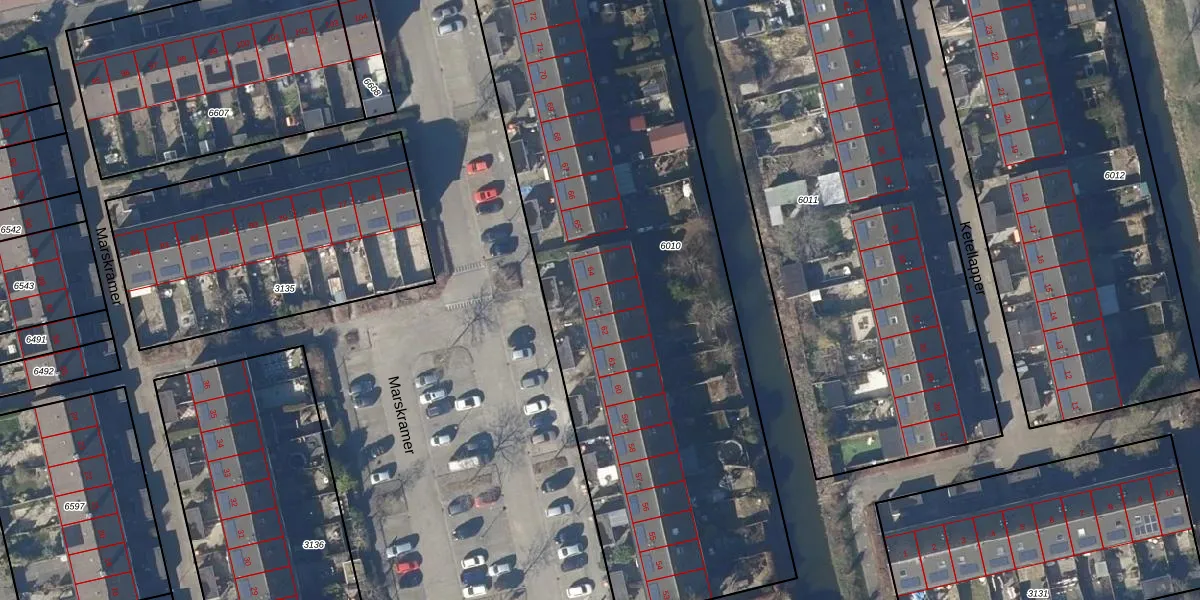 Het perceel waarop Marskramer 63 staat heeft een oppervlakte van 3477 m². Dit is een zeer groot perceel. De perceeloppervlakte wordt geregistreerd door het Kadaster. Gedetailleerde informatie over de maten van dit perceel kunt u vinden in het rapport Kadastrale kaart met maatvoering van Marskramer 63.