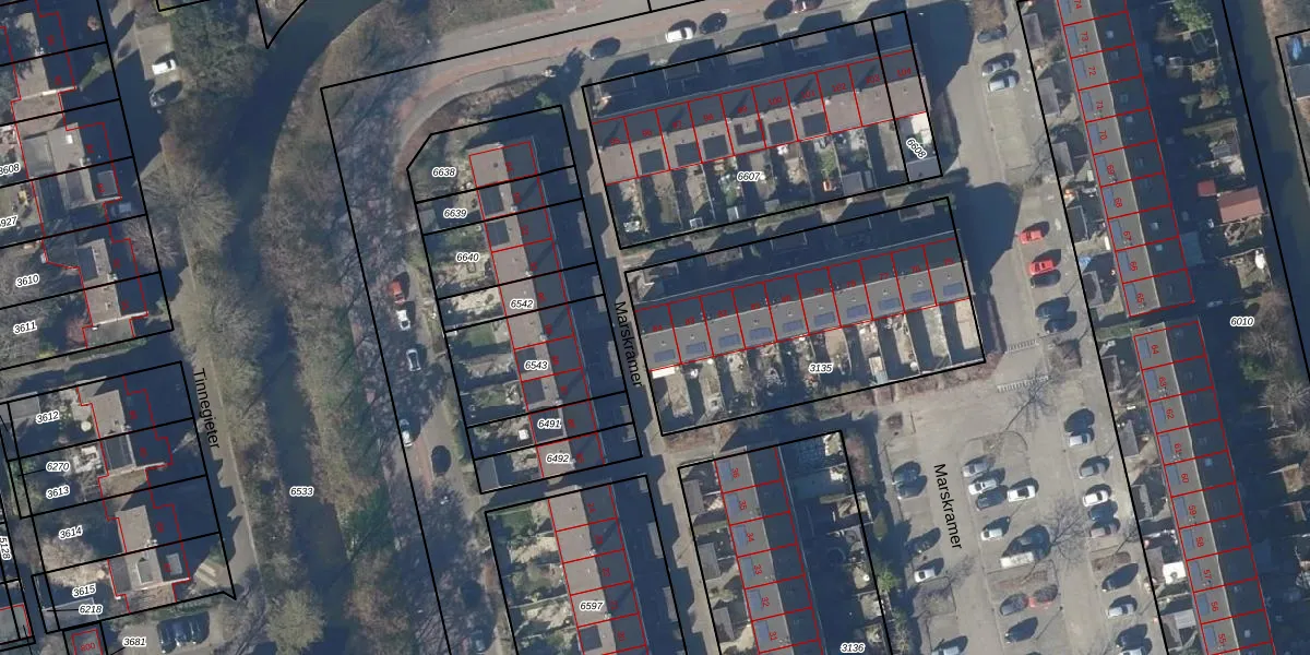 Het perceel waarop Marskramer 84 staat heeft een oppervlakte van 1286 m². Dit is een zeer groot perceel. De perceeloppervlakte wordt geregistreerd door het Kadaster. Gedetailleerde informatie over de maten van dit perceel kunt u vinden in het rapport Kadastrale kaart met maatvoering van Marskramer 84.