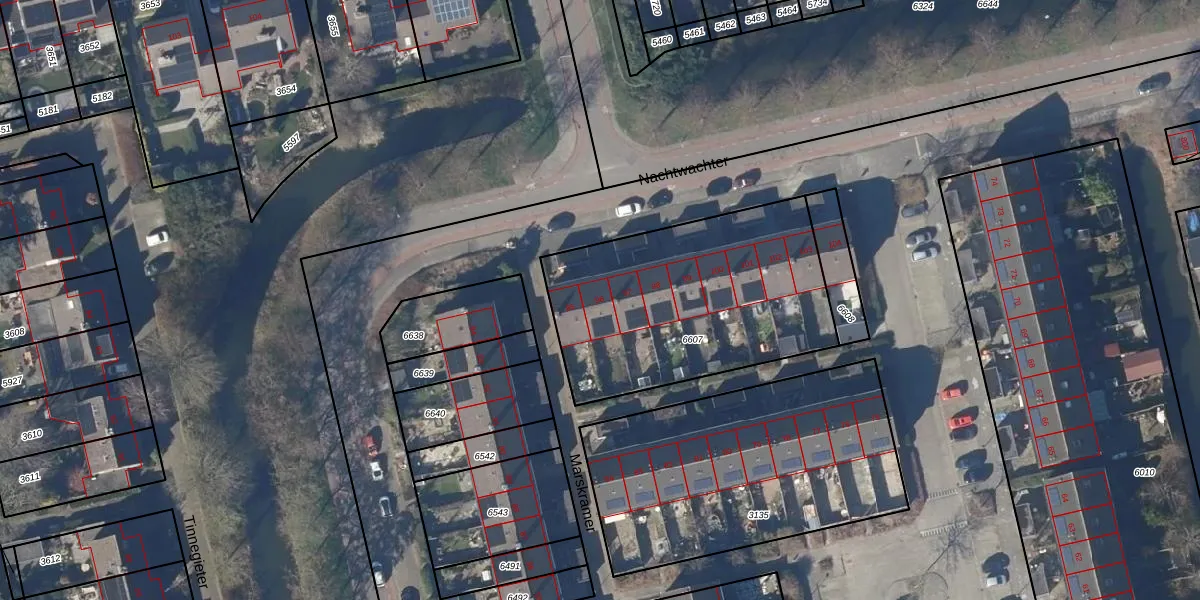 Het perceel waarop Marskramer 96 staat heeft een oppervlakte van 1153 m². Dit is een zeer groot perceel. De perceeloppervlakte wordt geregistreerd door het Kadaster. Gedetailleerde informatie over de maten van dit perceel kunt u vinden in het rapport Kadastrale kaart met maatvoering van Marskramer 96.
