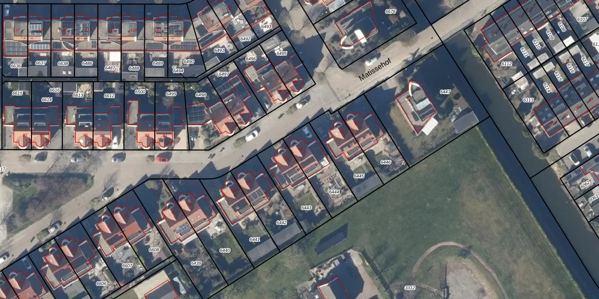 Het perceel waarop Matissehof 84 staat heeft een oppervlakte van 321 m². Dit is een groot perceel. De perceeloppervlakte wordt geregistreerd door het Kadaster. Gedetailleerde informatie over de maten van dit perceel kunt u vinden in het rapport Kadastrale kaart met maatvoering van Matissehof 84.