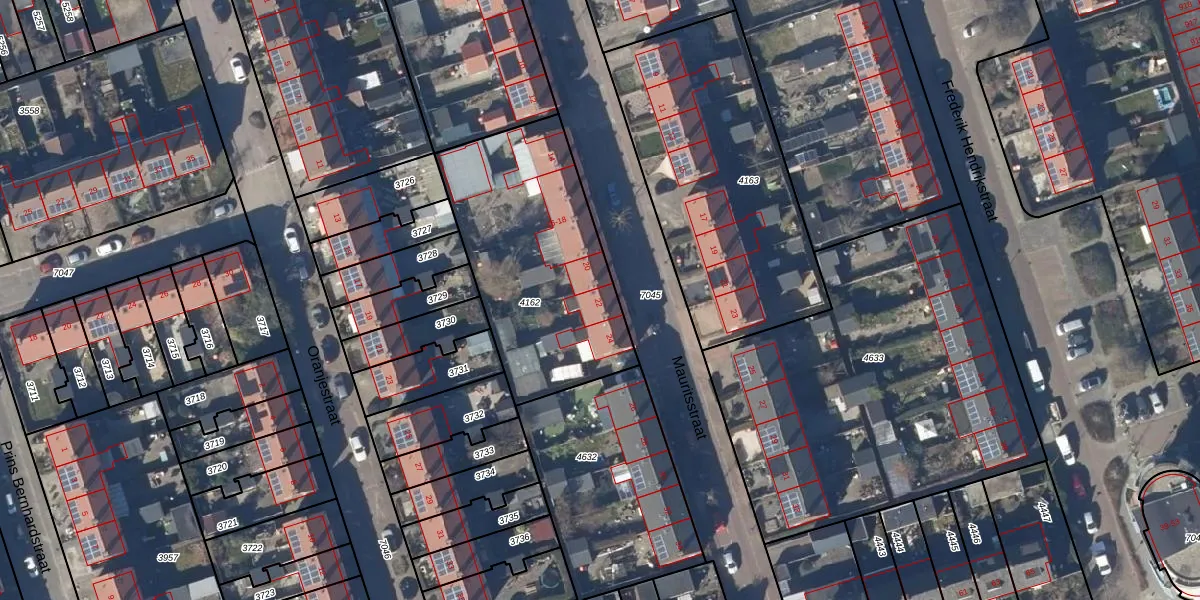 Het perceel waarop Mauritsstraat 22 staat heeft een oppervlakte van 960 m². Dit is een groot perceel. De perceeloppervlakte wordt geregistreerd door het Kadaster. Gedetailleerde informatie over de maten van dit perceel kunt u vinden in het rapport Kadastrale kaart met maatvoering van Mauritsstraat 22.