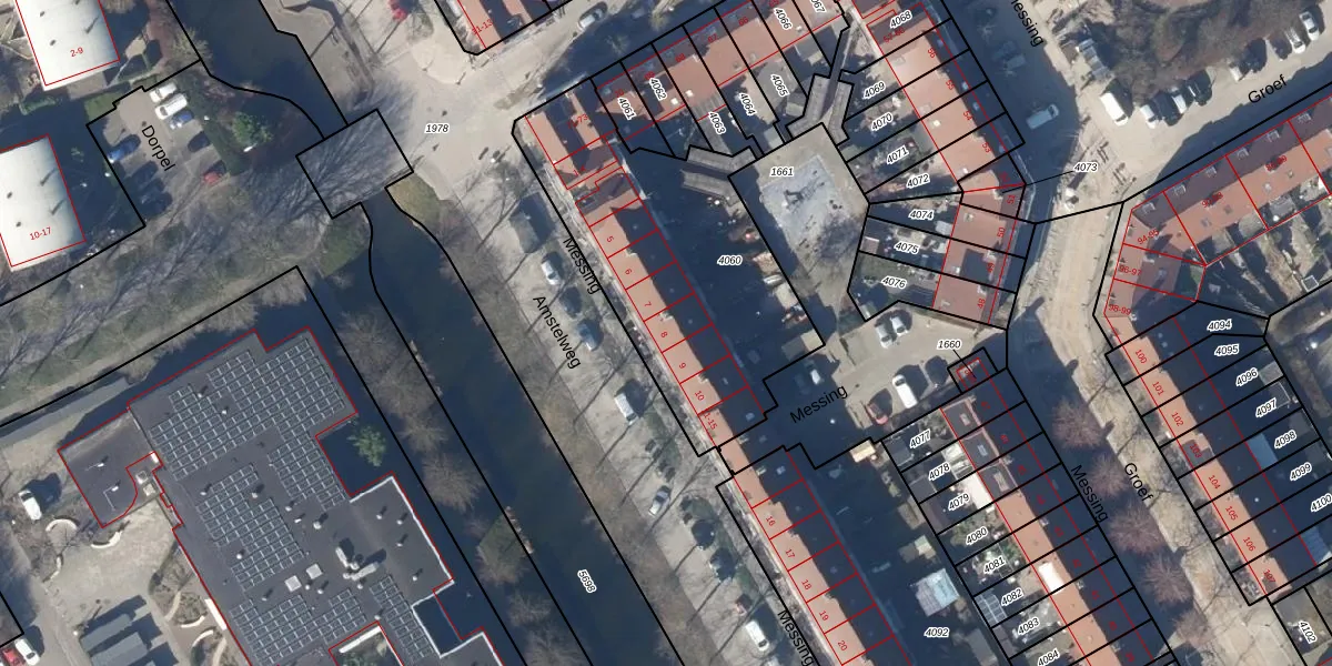 Het perceel waarop Messing 8 staat heeft een oppervlakte van 1213 m². Dit is een zeer groot perceel. De perceeloppervlakte wordt geregistreerd door het Kadaster. Gedetailleerde informatie over de maten van dit perceel kunt u vinden in het rapport Kadastrale kaart met maatvoering van Messing 8.