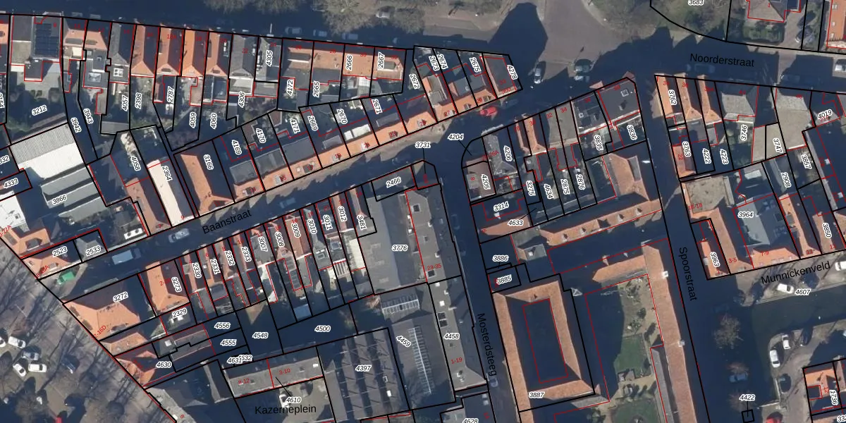 Het perceel waarop Mosterdsteeg 29 staat heeft een oppervlakte van 455 m². Dit is een groot perceel. De perceeloppervlakte wordt geregistreerd door het Kadaster. Gedetailleerde informatie over de maten van dit perceel kunt u vinden in het rapport Kadastrale kaart met maatvoering van Mosterdsteeg 29.