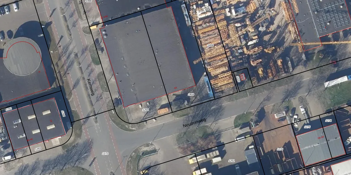 Het perceel waarop Neutronweg 4-A staat heeft een oppervlakte van 1534 m². Dit is een zeer groot perceel. De perceeloppervlakte wordt geregistreerd door het Kadaster. Gedetailleerde informatie over de maten van dit perceel kunt u vinden in het rapport Kadastrale kaart met maatvoering van Neutronweg 4-A.