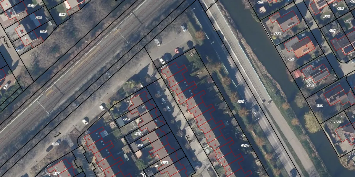 Het perceel waarop Nok 72 staat heeft een oppervlakte van 2519 m². Dit is een zeer groot perceel. De perceeloppervlakte wordt geregistreerd door het Kadaster. Gedetailleerde informatie over de maten van dit perceel kunt u vinden in het rapport Kadastrale kaart met maatvoering van Nok 72.