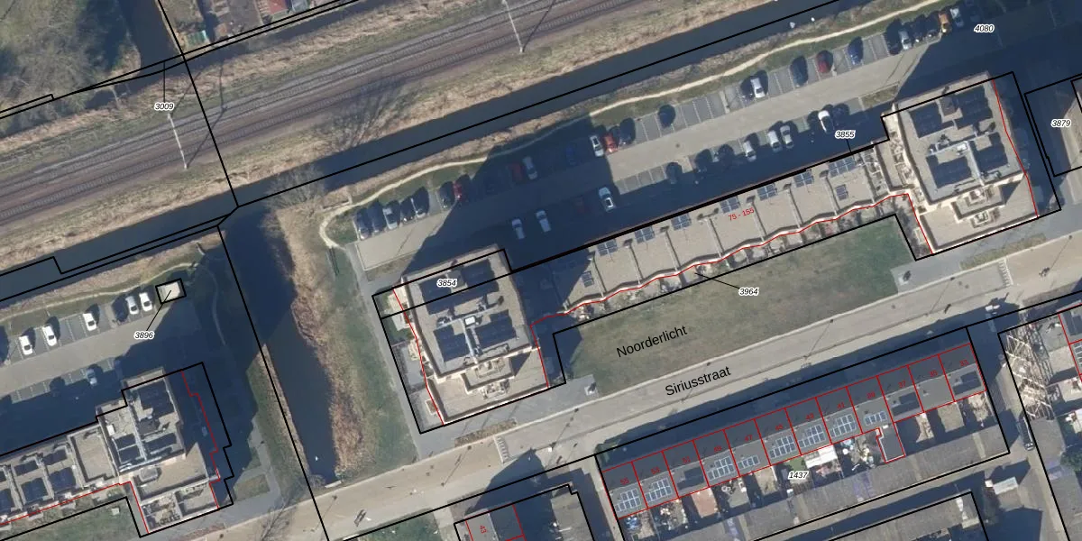 Het perceel waarop Noorderlicht 104 staat heeft een oppervlakte van 2306 m². Dit is een zeer groot perceel. De perceeloppervlakte wordt geregistreerd door het Kadaster. Gedetailleerde informatie over de maten van dit perceel kunt u vinden in het rapport Kadastrale kaart met maatvoering van Noorderlicht 104.